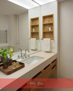عندما يريد أن ينفذ وحدات الحمام حيث أنه لا يخلو حمام من وحدات تخزين خاصة فى الحمامات كبيرة المساحة نسبياً ، التى تستوعب وحدات تخزين لأغراض الحمام من صابون و مناشف و غيرهما و غالبا ما تكون وحدات التخزين مصنوعة من الخشب و مدهونة بدهانات خاصة تتحمل الرطوبة و الحرارة الناتجة عن المياه الساخنة أو خامة البورديوم أو HDF أو PVC .